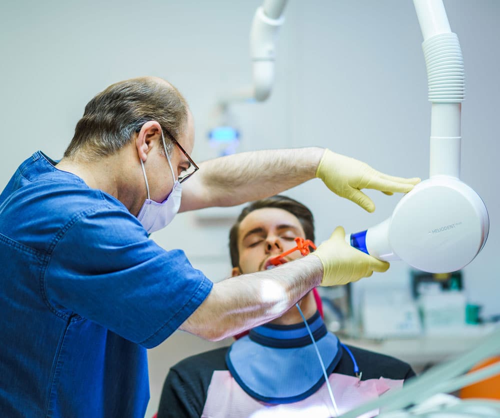 Först tar vi bort all karies och rengör rotkanal/er från bakterier och skadad vävnad. Tanden fylls därefter med bakteriehämmande medel som får verka fram tills nästa besök. Under den tiden har du en provisorisk fyllning. Vid nästa besök gör vi de permanenta fyllningar som både är avsedda för rotkanal och tand. Det kan hända att du känner dig öm i det behandlade området, men det kommer oftast att försvinna redan efter några dagar.